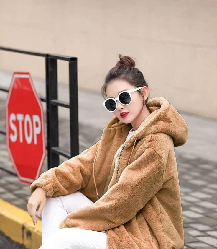 Flannel Woman Hooded Tops with Zipper 2000s Casual Cotton Youthful Clothes Sweat-shirt Full Zip Up Hoodies Sweatshirt for Women