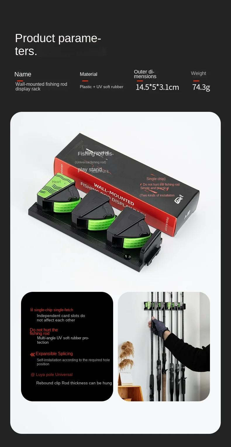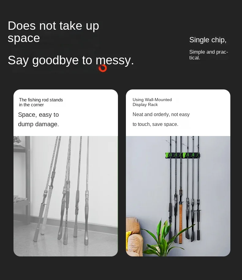 LINNHUE Wall Mounted and 3M Adhesive Fishing Rod Holders Vertical Fishing Rod Display Rack 3-hole can splicing