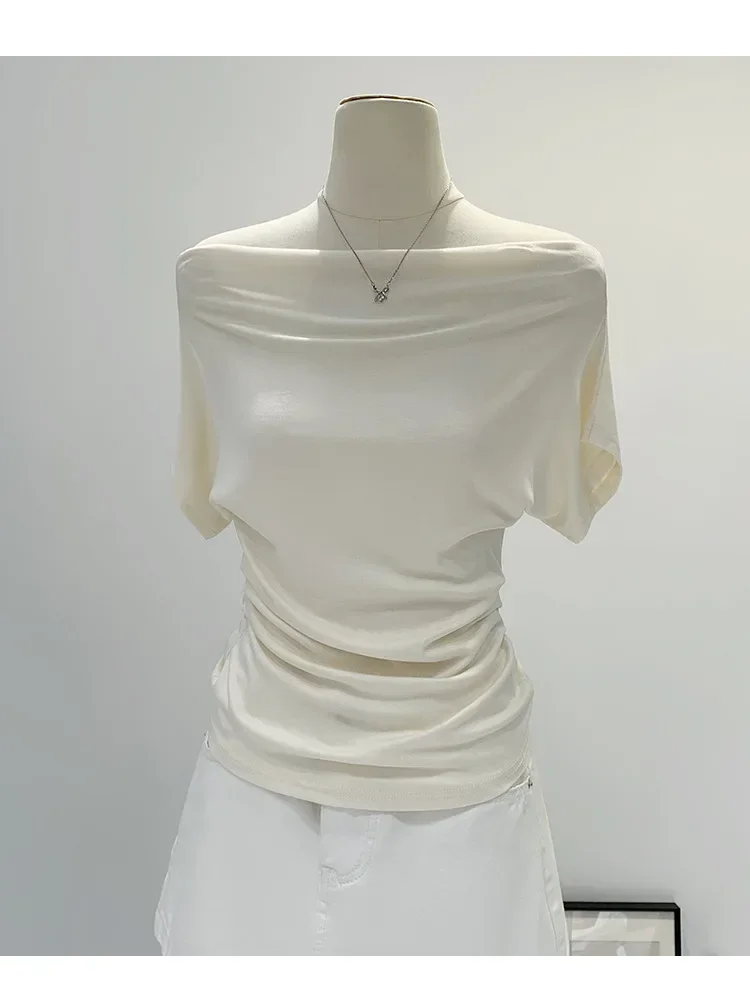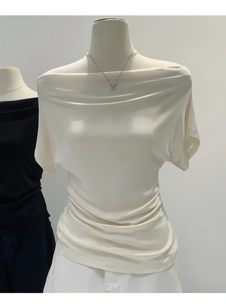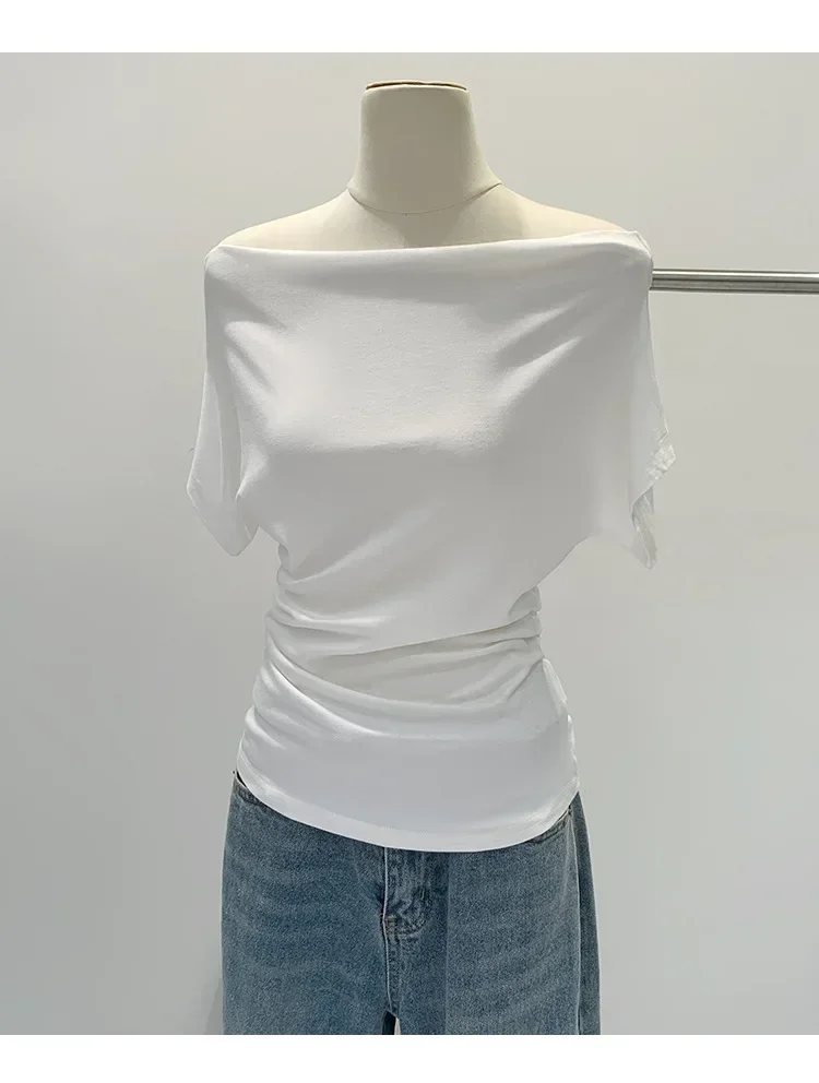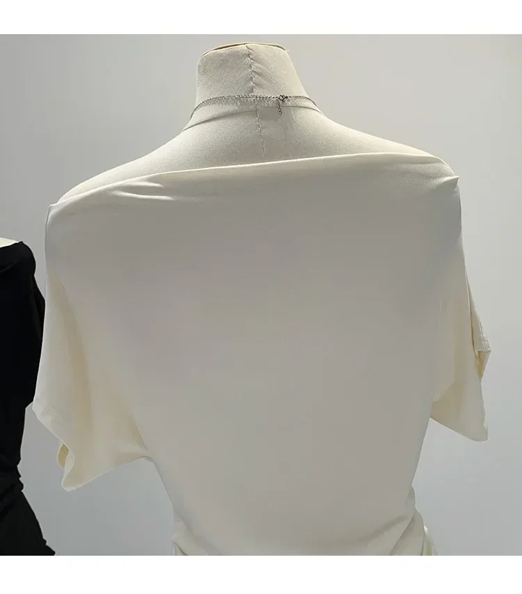 Summer Pure Desire One Shoulder Black Short Sleeve Women's T-shirt Korean Style Slimming Top Exposed Shoulder Fashionable