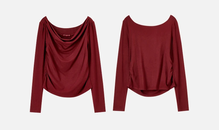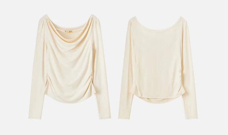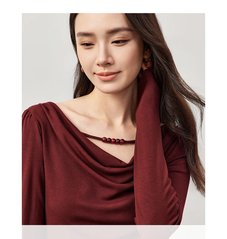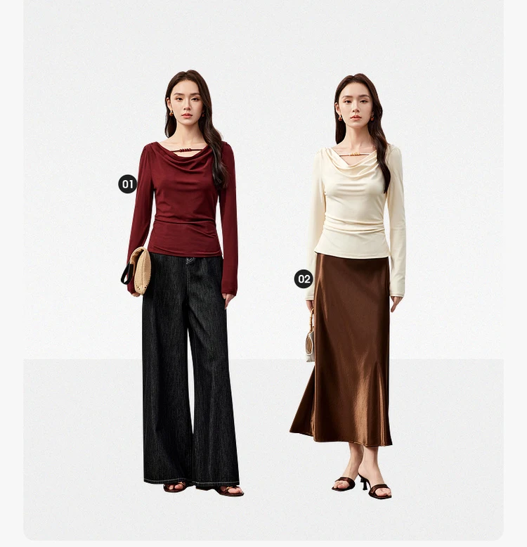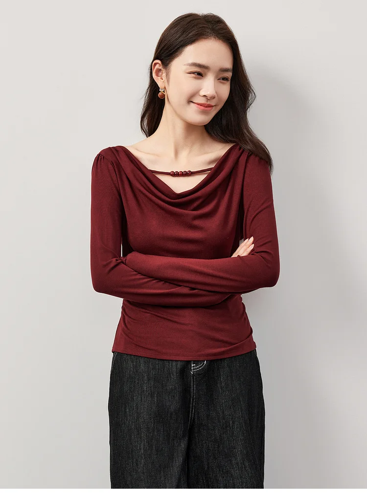 Women’s Swing Collar Slim Fit T-Shirt – Long Sleeve Knitted Pullover, Spring 2025 Fashion