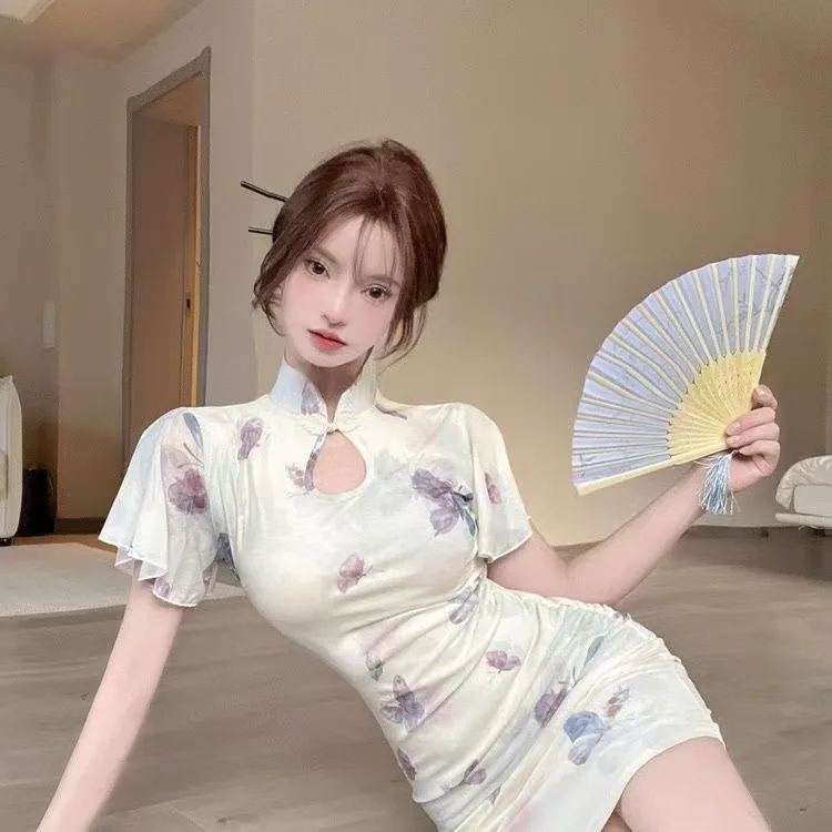 Women’s Vintage Qipao Mini Dress – Sexy Summer Cheongsam, Elegant Club Bodycon Dress